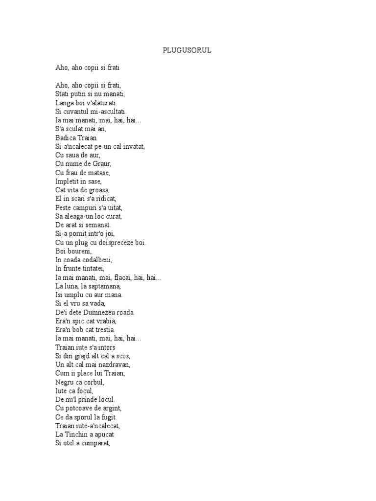 Plugusorul De Anul Nou Din Vrancea Versuri Si Audio Youtube Source from : https://www.youtube.com/watch?v=3ENI_KwyoN8 Plugusorul nostru este carmen avele al romanilor, colindul cu rugaciunea de ocrotire a semanatorilor din camp. Anul nou o să ne fie, început de veselie. Acest obicei tine, de regula, de la craciun pana la anul nou. Vă doresc întâi de toate, un an nou cu sănătate, voie bună, trai uşor, bucurie şi mult spor. Uraturile sunt creatii populare în versuri care se recita de uratori în ajunul anului nou;
