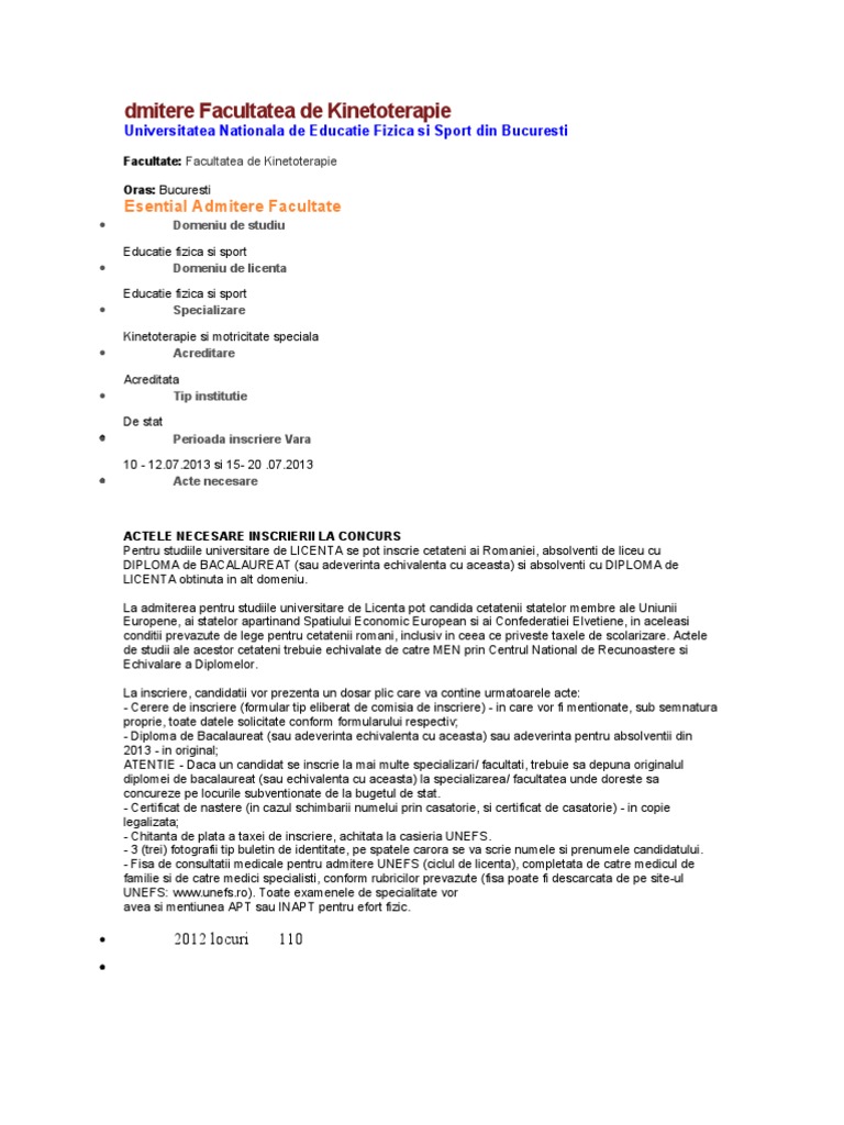 Facultatea De Kinetoterapie Admitere
