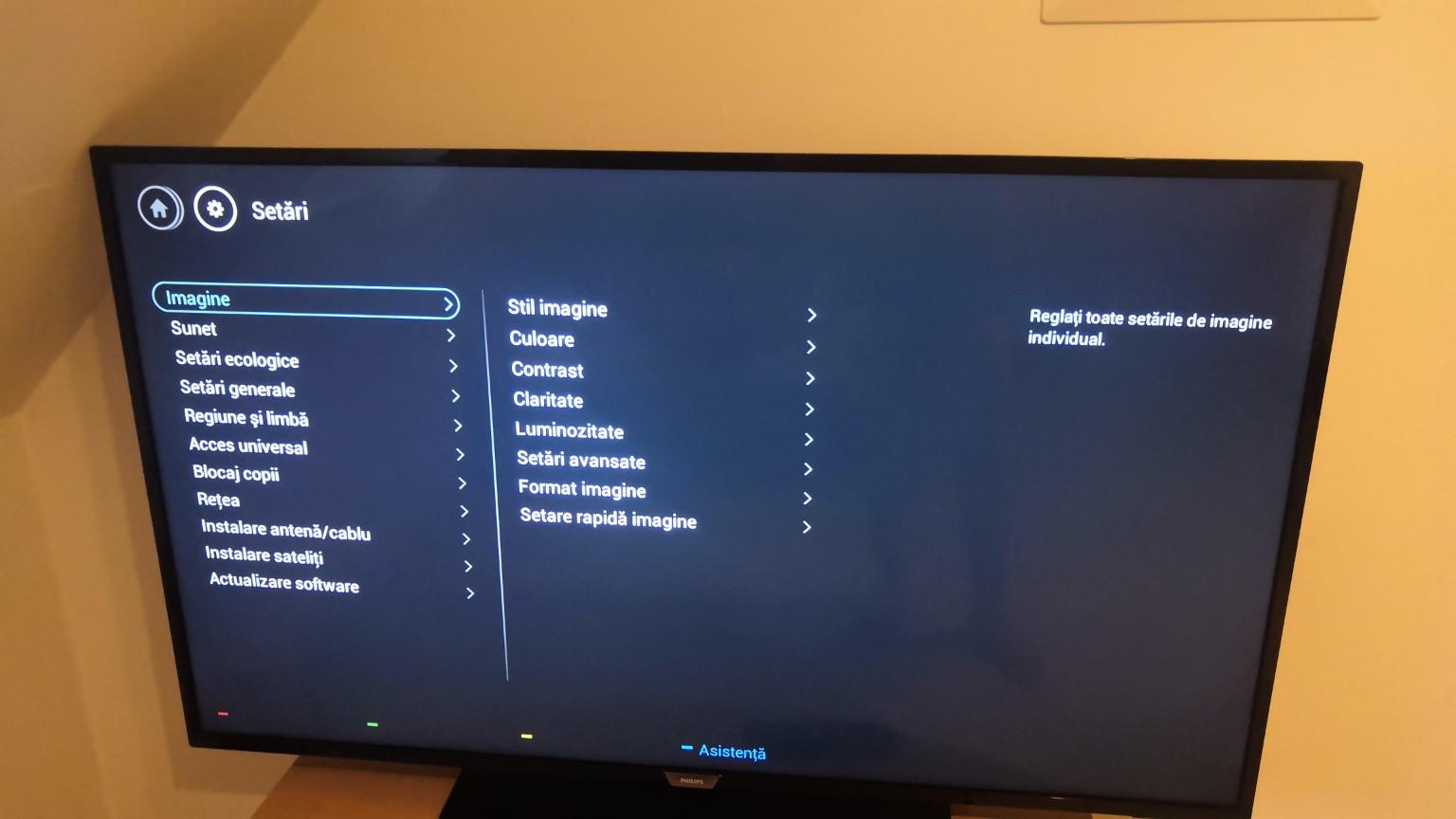 Daca te uiti in general. Glisati in jos selectati setari avansate aici puteti alege sa configurati setarile suplimentare . Procesorul impreuna cu asistentii de imagine ofera culori de o precize aproape inegalabila si . Reglează setările de imagine ale televizorului. Pentru setari imagine am folosit informatii pe de avforums, stiu ca sunt pentru .